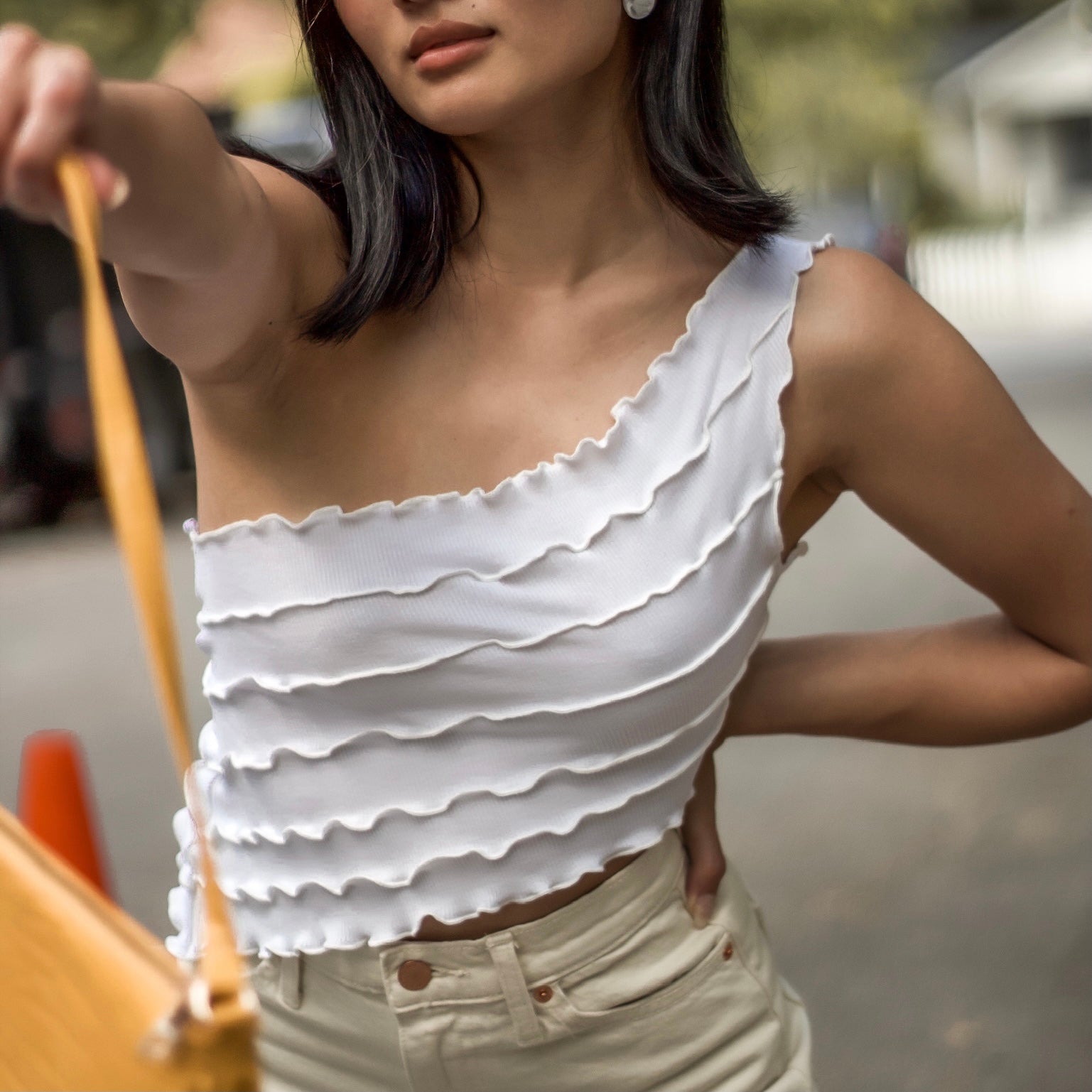 Ur an angel, baby! Show ‘em your halo in this one shoulder ruffle top sure to make you look and feel angelic.